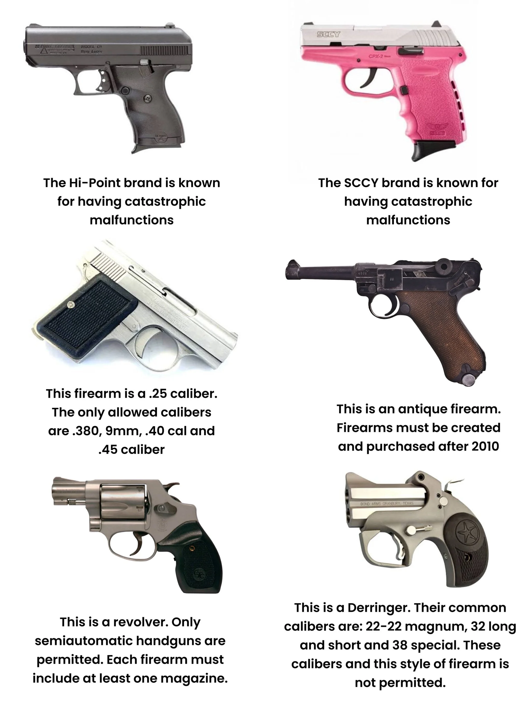 Examples of firearms that are not permitted at MSKD classes:
